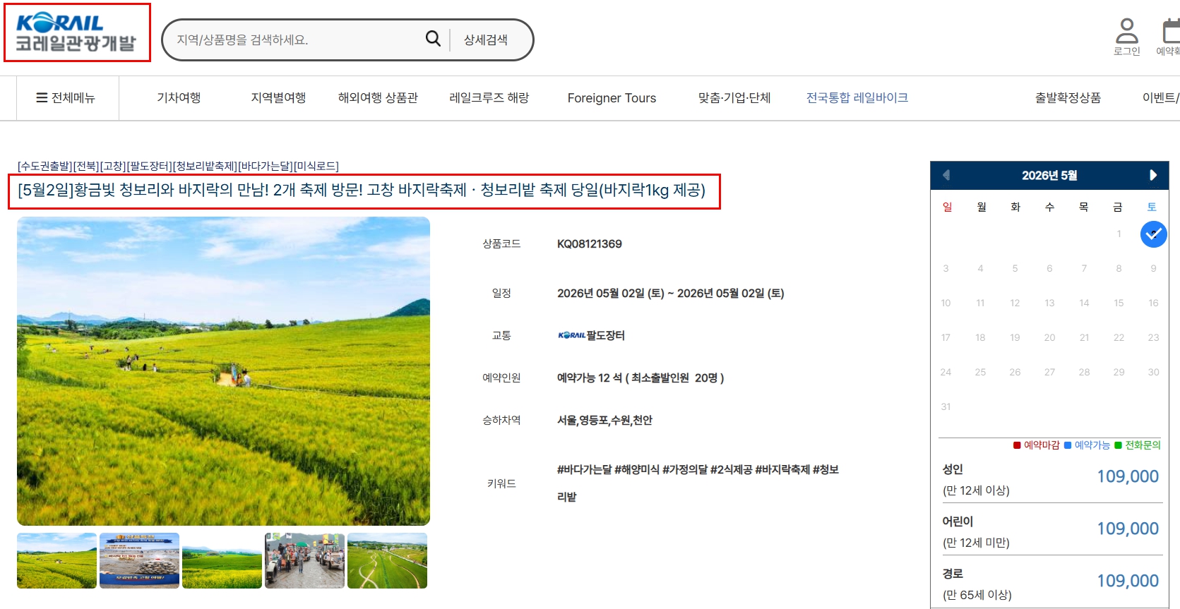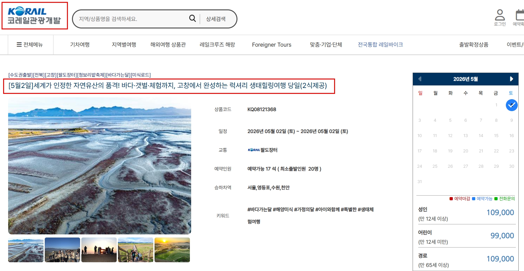 특히 일부 일정은 기차 여행 상품 형태로 한정 운영되기 때문에