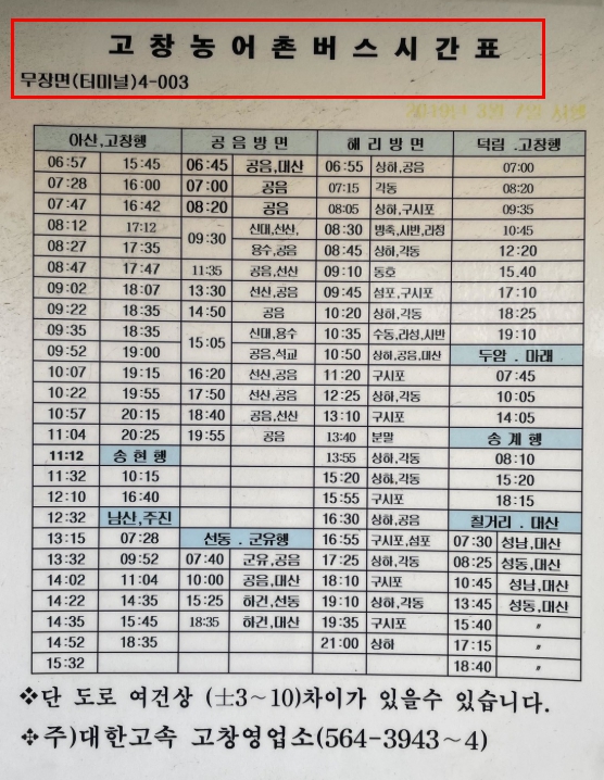 ① 고창터미널 → 무장행 버스