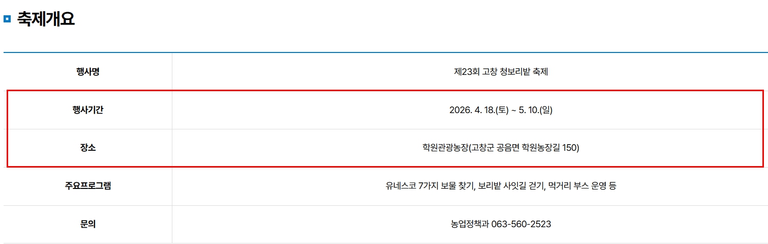 📅 고창 청보리밭 축제 일정