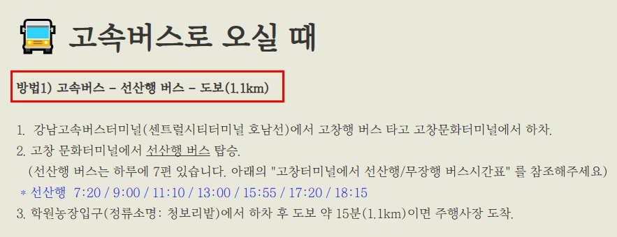 ② 고창터미널 → 선산행 버스