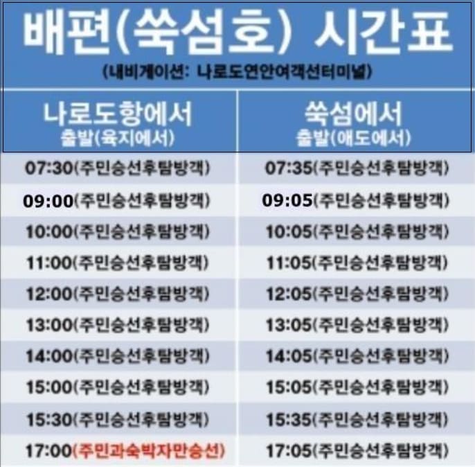 - 탑승 장소: 나로도연안여객선터미널 (고흥군 봉래면 나로도항길 120-7)