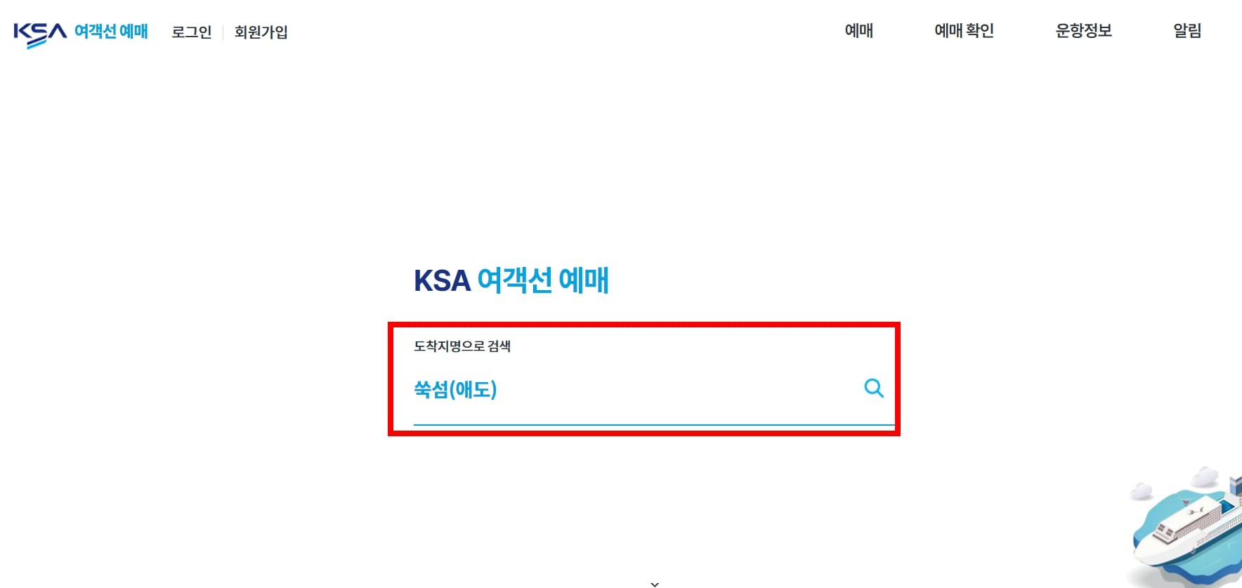 - 예매 사이트: 한국해운조합 KSA 여객선 예매