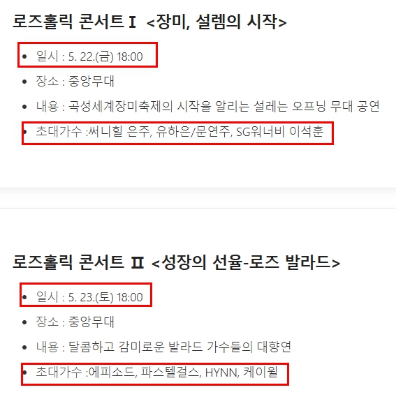 🌟 곡성 장미축제 초대가수 공연 일정