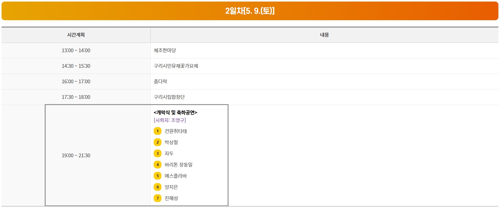 🌟 구리 유채꽃축제 일정 & 공연 라인업