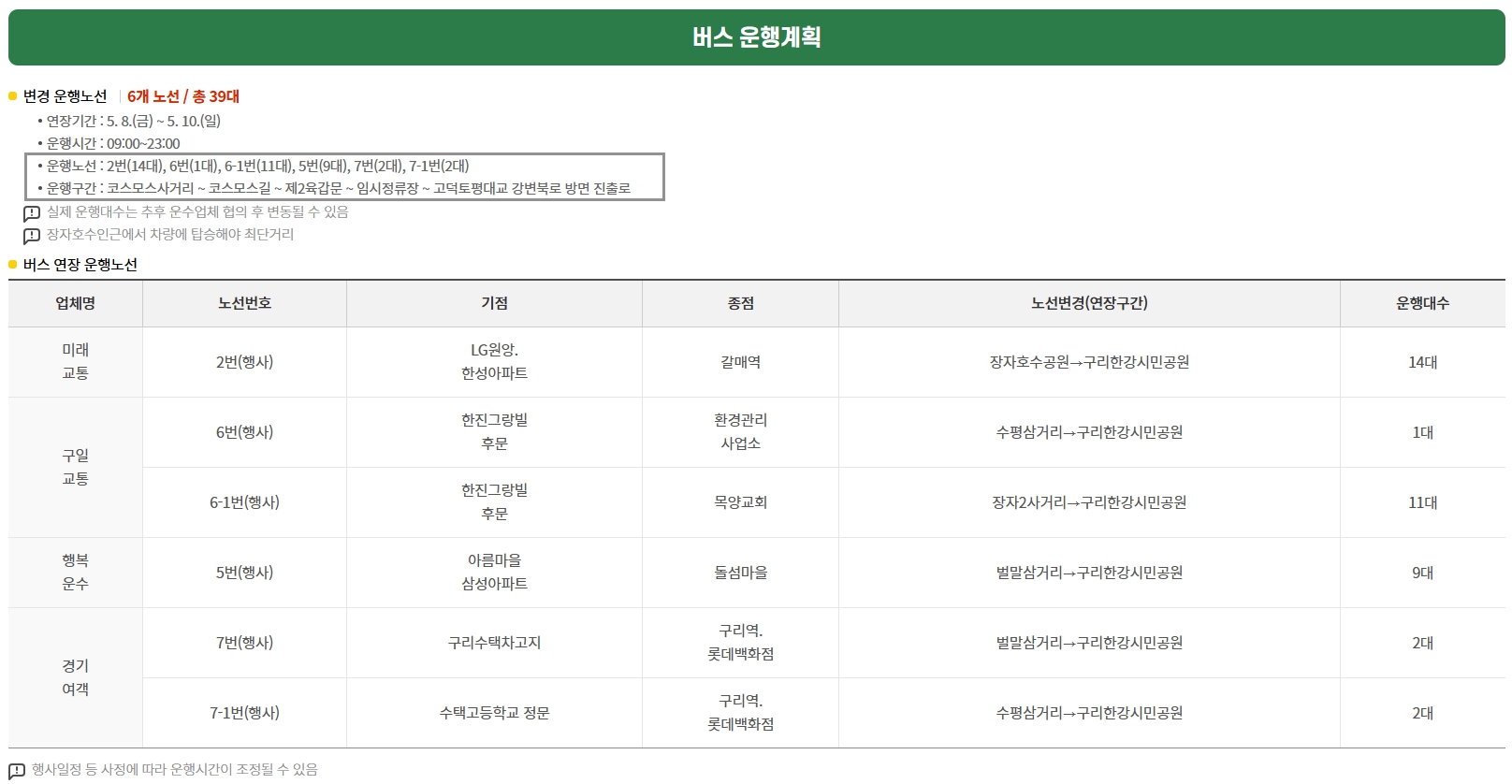- 운행기간 : 5월 8일 ~ 5월 10일