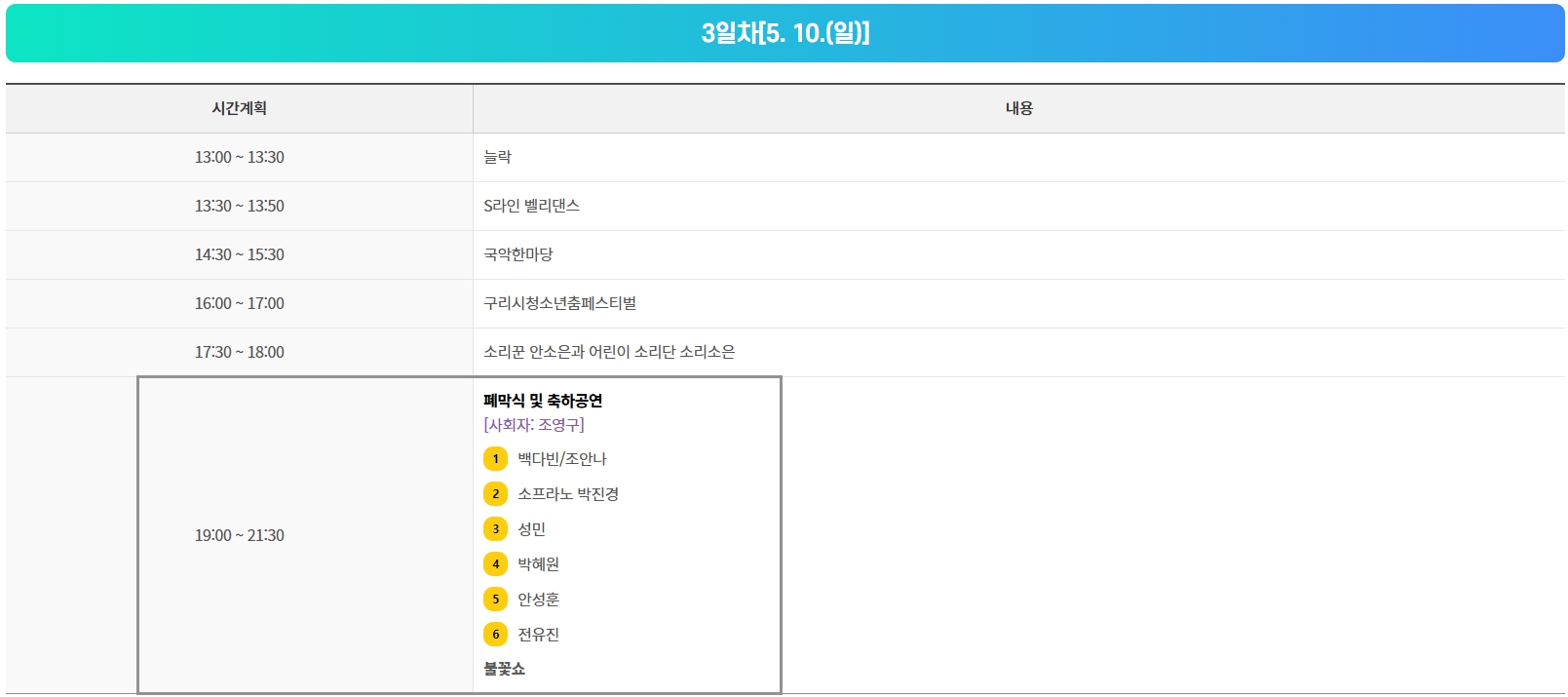 ※ 마지막 날 = 공연 + 불꽃놀이 하이라이트