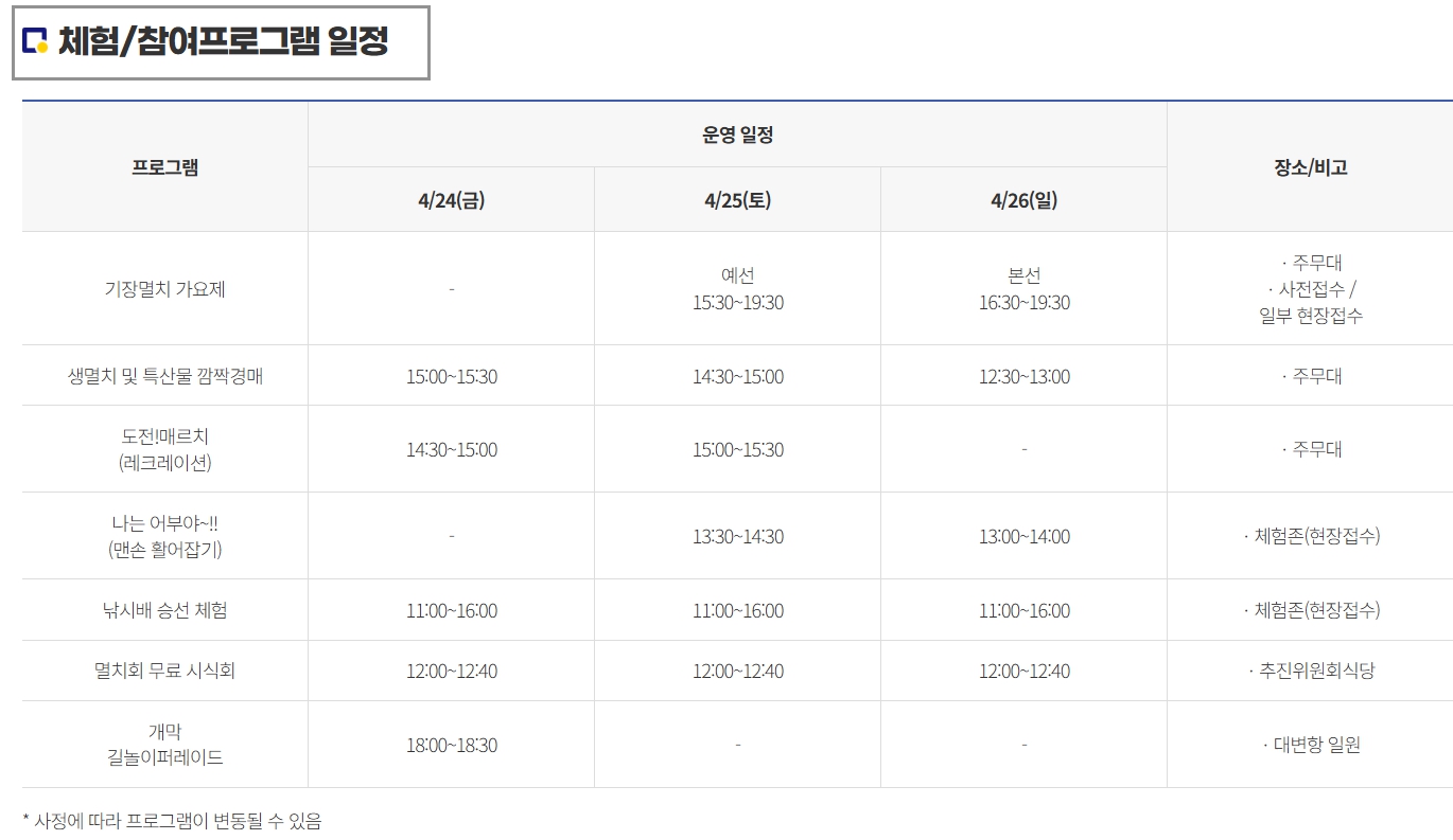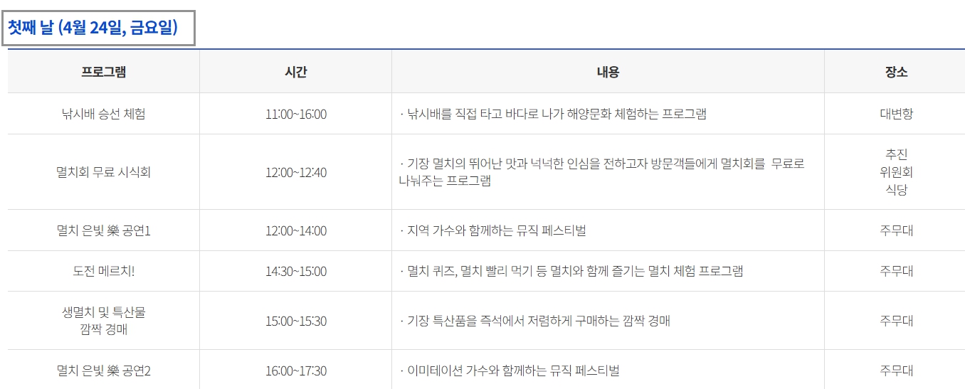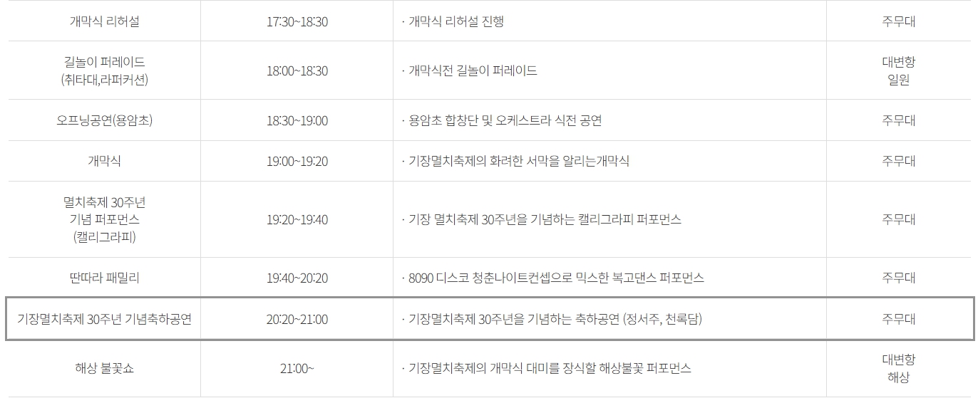 🌟 기장 멸치축제 메인 프로그램 총정리