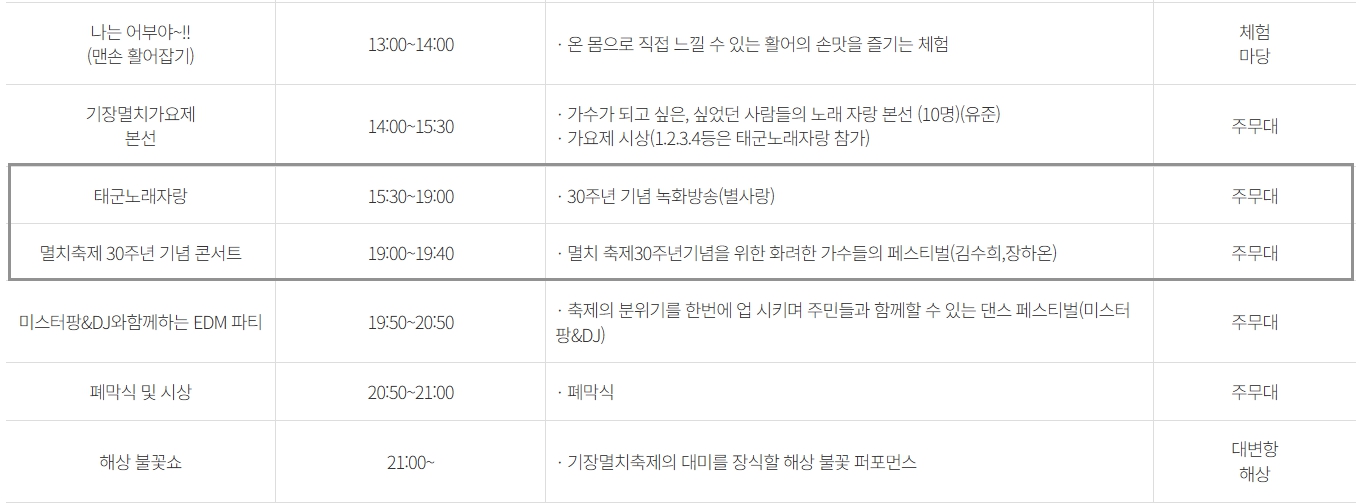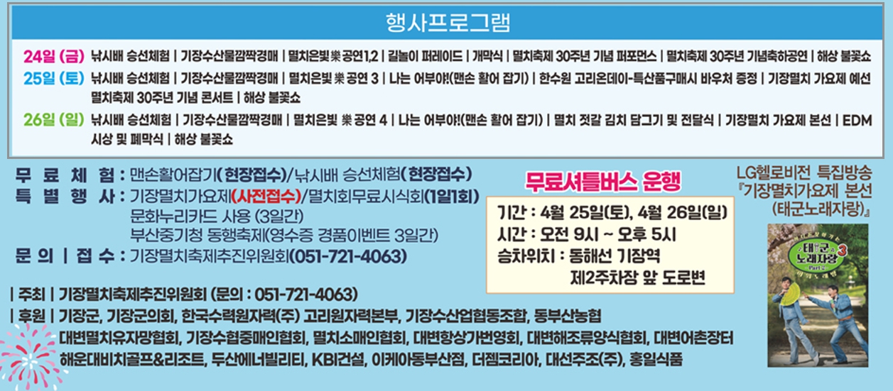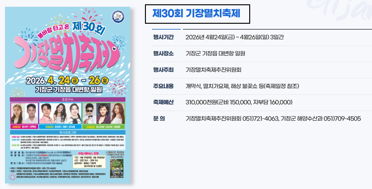 🌟 기장 멸치축제 초대가수 공연 일정