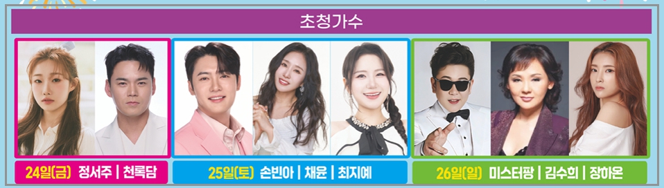다양한 장르의 가수들이 출연해 축제 분위기를 한층 끌어올립니다.