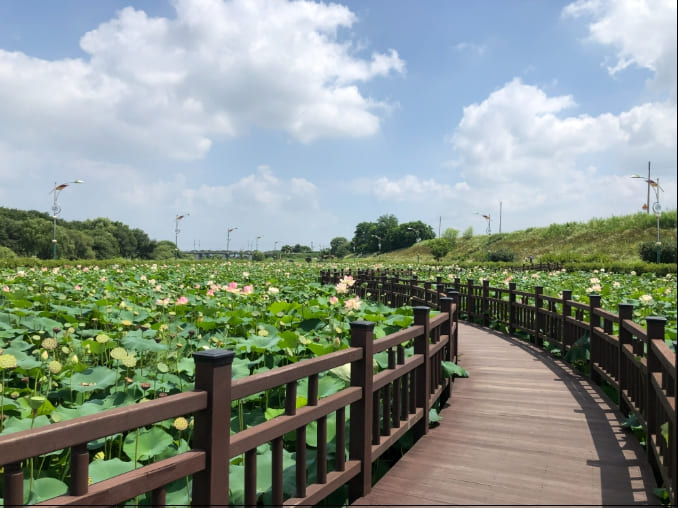 - 약 25,000㎡ 규모의 연꽃 단지로, 다양한 종류의 연꽃이 조성되어 있습니다.