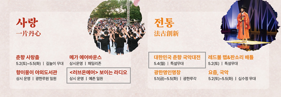 - 남원 춘향제는 “공연 라인업 보고 날짜 선택하면 성공”