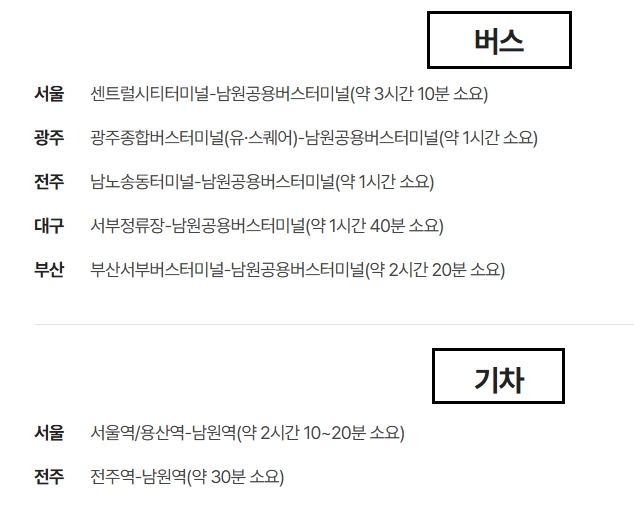 KTX/ITX → 남원역 하차 → 셔틀 이동