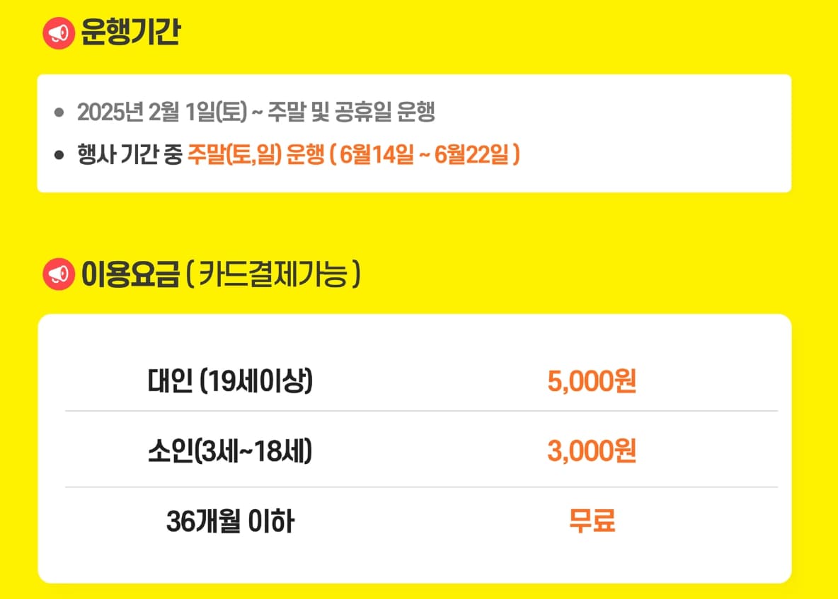- 36개월 미만 유아: 무료입장