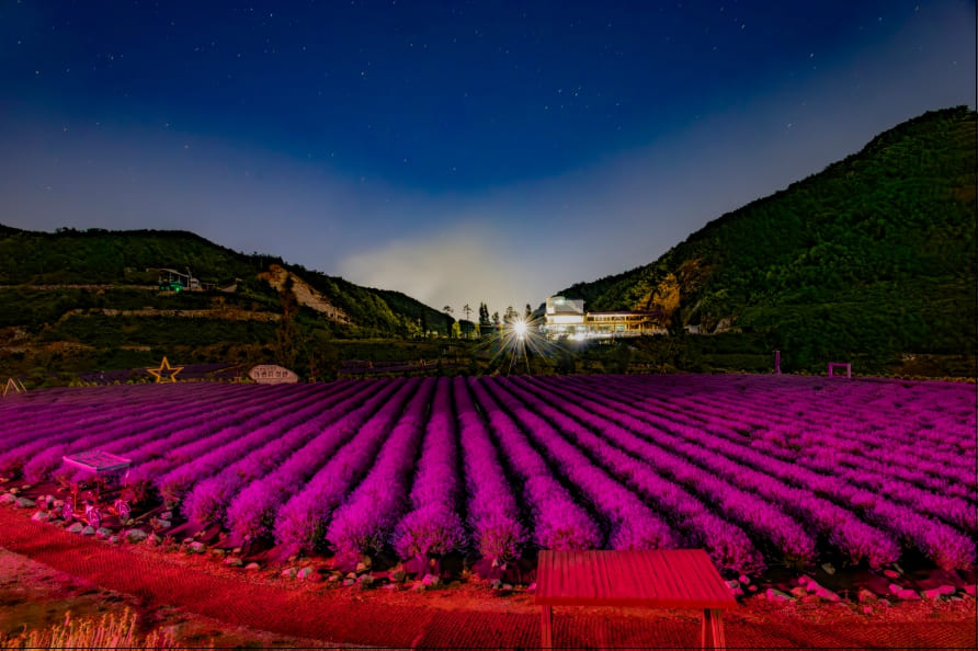 SNS에 업로드할 인생샷을 남기고 싶다면 야간 방문을 적극 추천합니다. 특히 하얀색 드레스를 입고 방문하면 라벤더 배경과 완벽한 조화를 이룹니다.