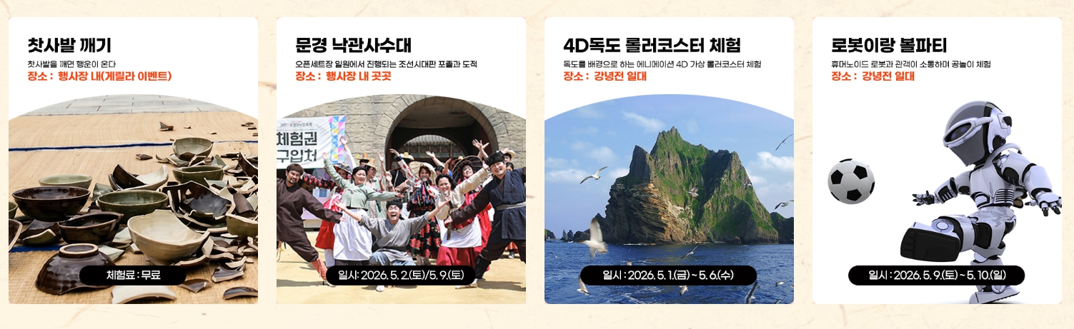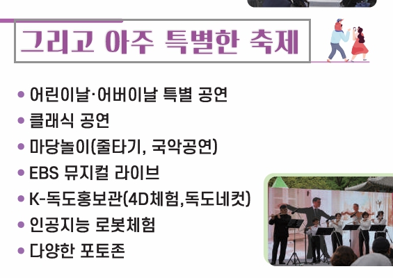 👉 출연가수보다는 체험 중심 일정