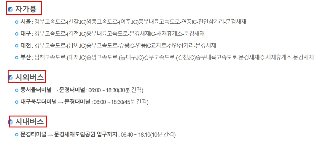 - 문경터미널 → 문경새재 도립공원 입구
