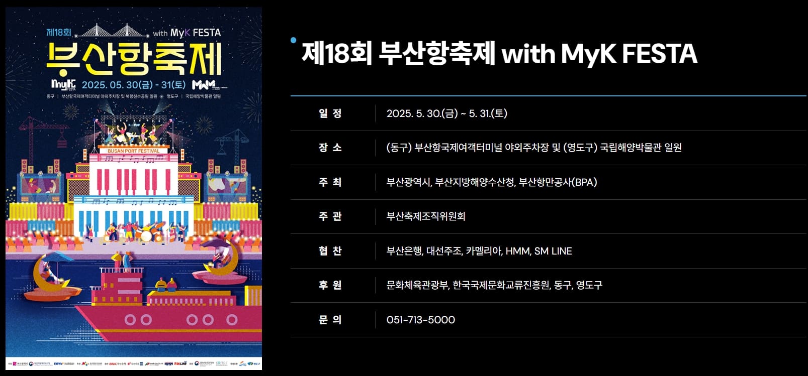 부산의 대표 여름축제, 부산항축제 2025가 다시 돌아왔습니다. 이번 제18회 부산항축제는 2025년 5월 30일(금)부터 31일(토)까지 이틀간 개최되며, ‘K-POP과 불꽃의 향연’이라는 주제로 부산항 일대를 화려하게 수놓습니다.