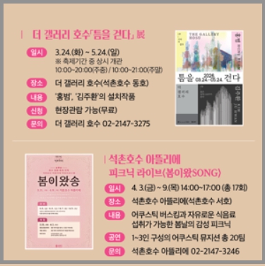 - 벚꽃 라이브 공연: 4월 4일 ~ 10일 (14:00~19:00)