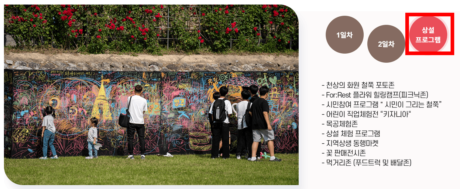 | 현장 이용 | 행사장 지도·프로그램표 수령, 안내소 위치 확인, 체험·공연 일정 체크, 포토존·먹거리존 위치 파악 |