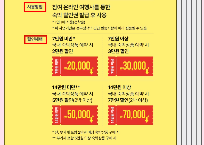 쿠폰 발급 시간, 할인 금액 구간, 2박 이상 할인 구조를 정확히 이해해야
