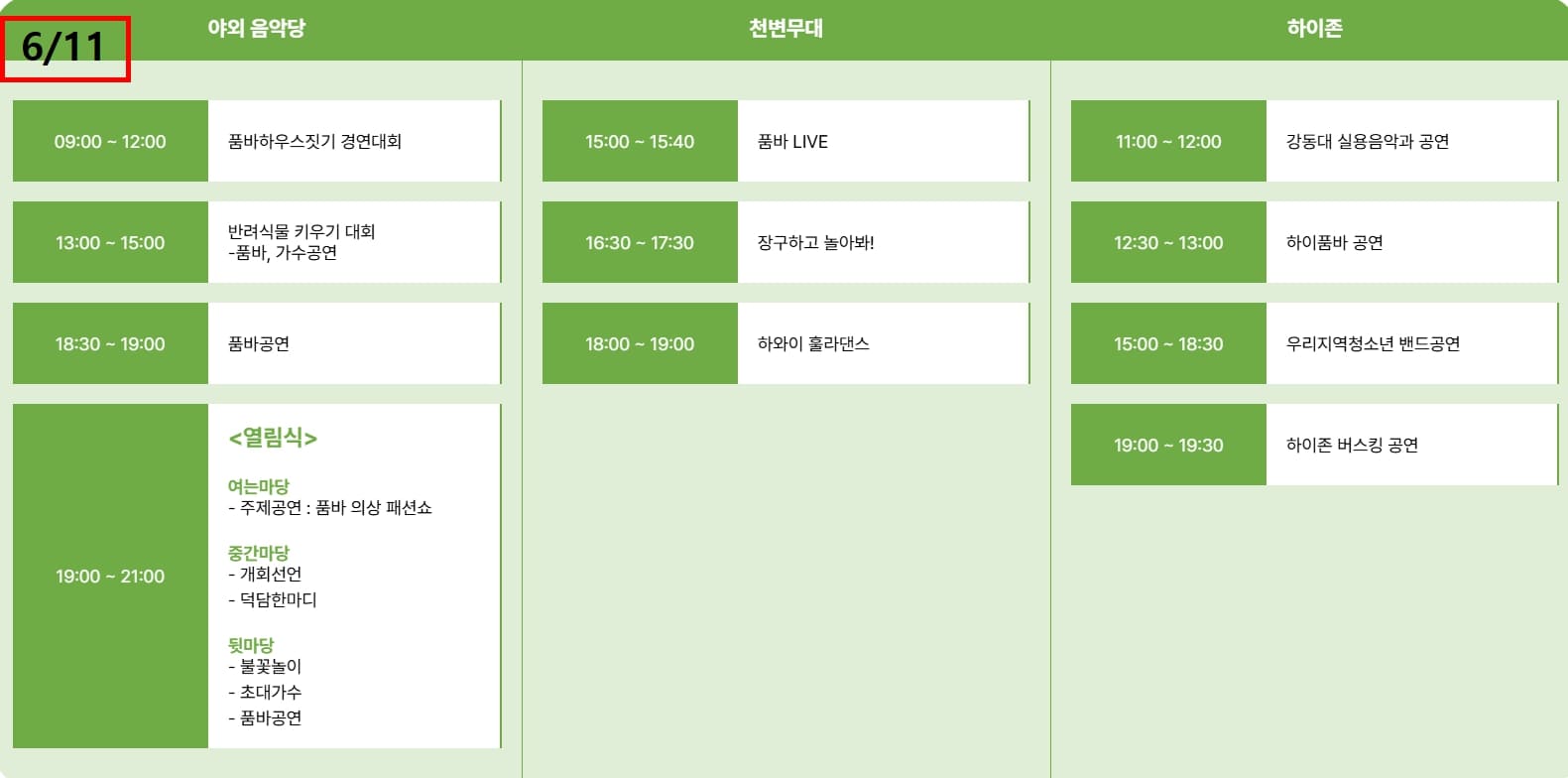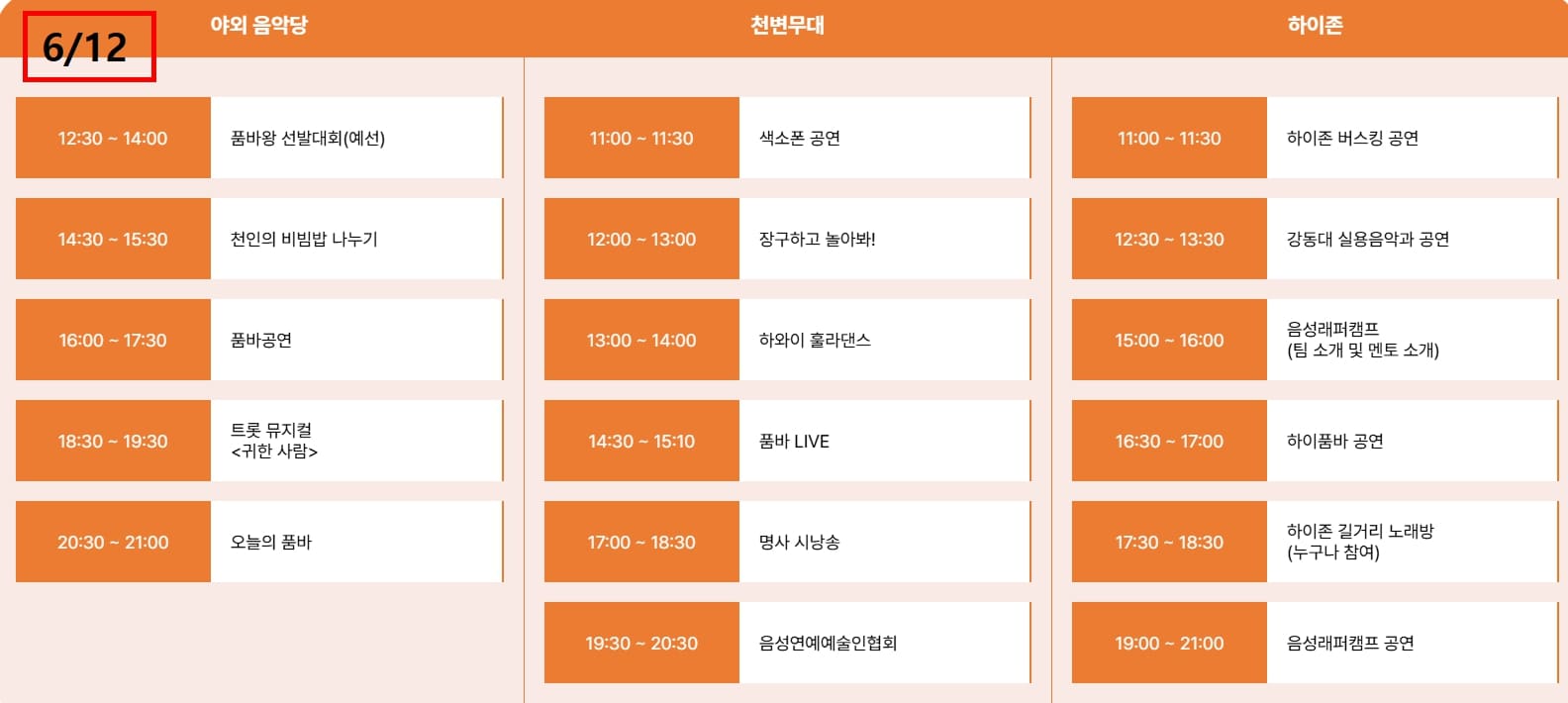 - 뮤지컬 공연과 가요제, 청소년 댄스 경연 등 볼거리가 가득