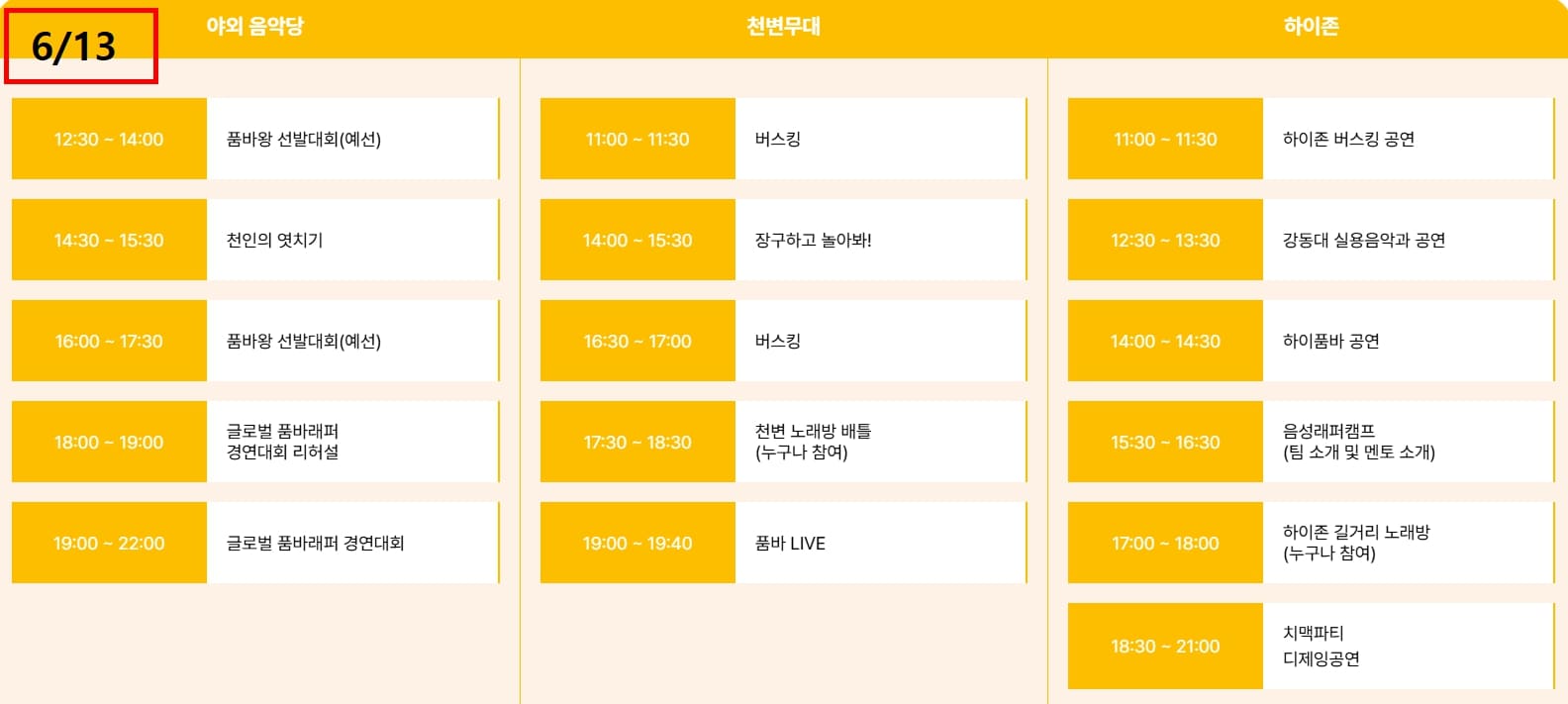 - 래퍼 캠프 페스티벌: 젊은 층 대상 힙합 및 스트릿 문화 콘서트