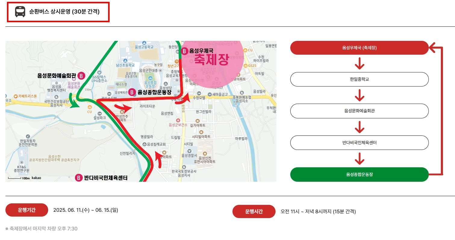 - 버스터미널 → 축제장소 간 무료 셔틀 이용 가능