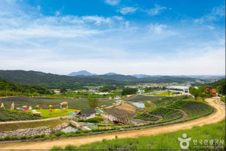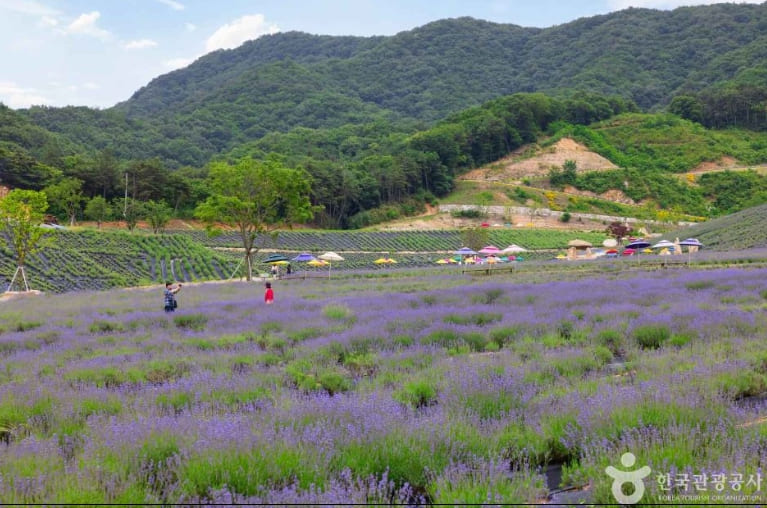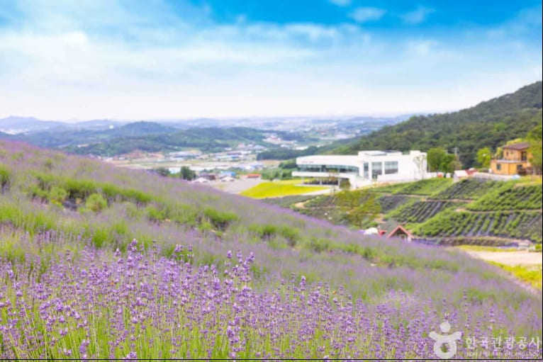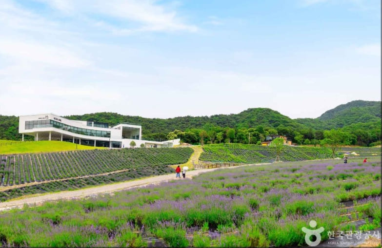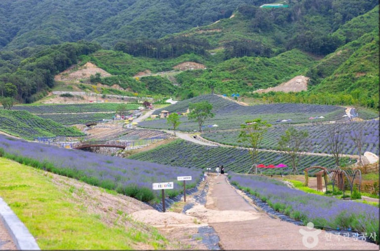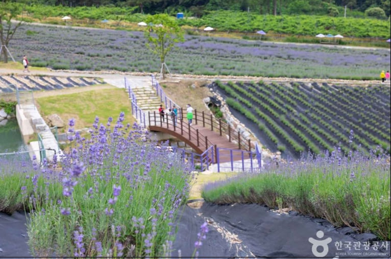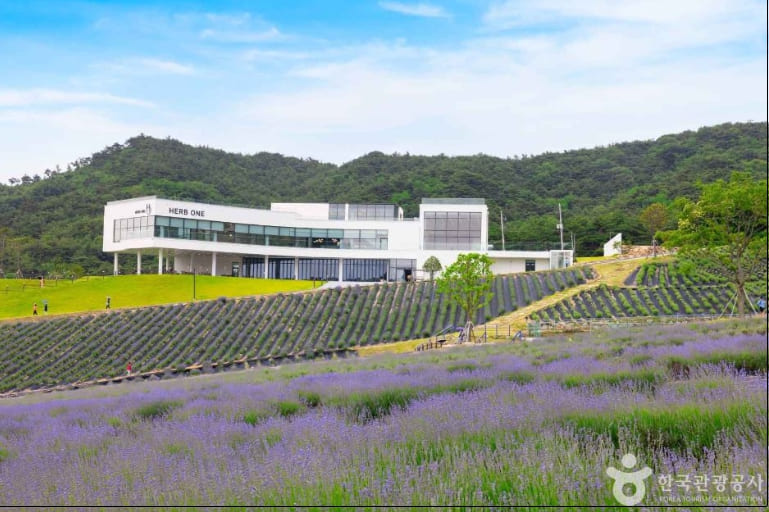 허브원에서는 매년 5월 중순~6월 초 사이에 라벤더 시즌이 열립니다. 공식 축제는 아니지만, 이 시기에는 10만 평 규모의 정원에 라벤더와 라반딘이 만개해 ‘자연 축제’라 불릴 만큼 아름다운 풍경을 자랑합니다. 이 시기에 방문하면 보랏빛 꽃길에서 인생샷을 남길 수 있습니다.