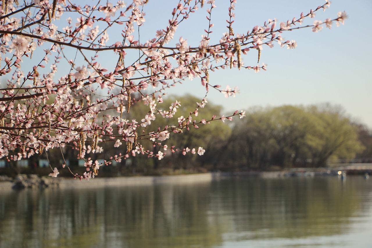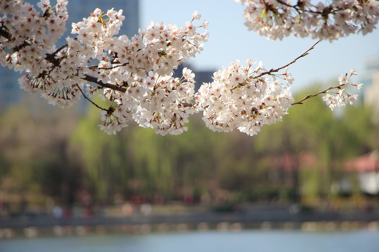 ✔ 호수와 벚꽃이 함께 보이는 풍경