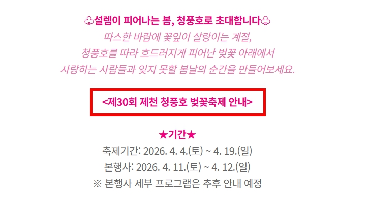 📌 청풍호 벚꽃 축제 일정 2026