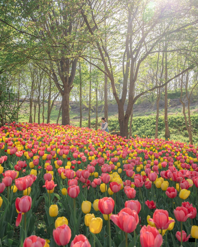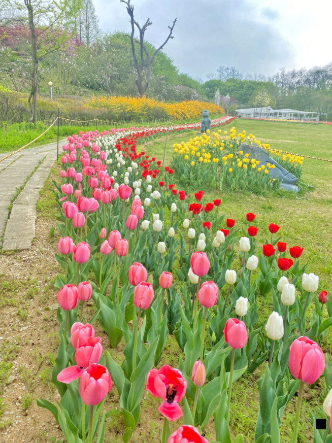 형형색색의 튤립과 수선화가 어우러진 대규모 꽃밭은 봄의 정취를 한껏 느끼게 해 주며, 사진 명소로도 인기가 많습니다. 유럽풍 정원, 꽃 터널, 풍차 배경 등 다양한 포토존이 마련되어 있습니다.