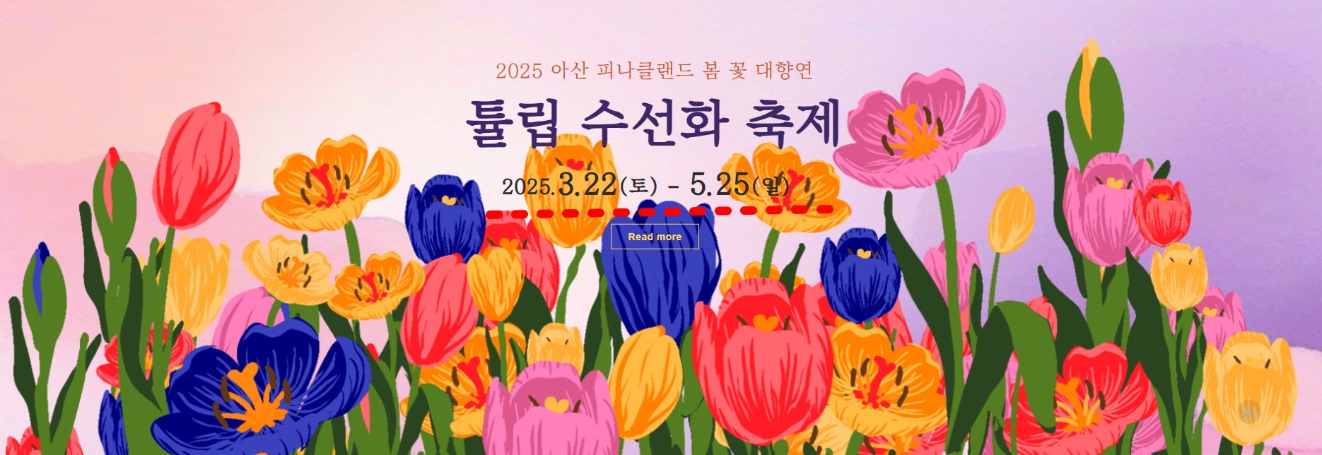 충청남도 아산에 위치한 피나클랜드는 매년 봄, 약 100만 송이의 튤립과 수선화가 화려하게 만개하는 수선화 튤립 축제를 개최합니다.