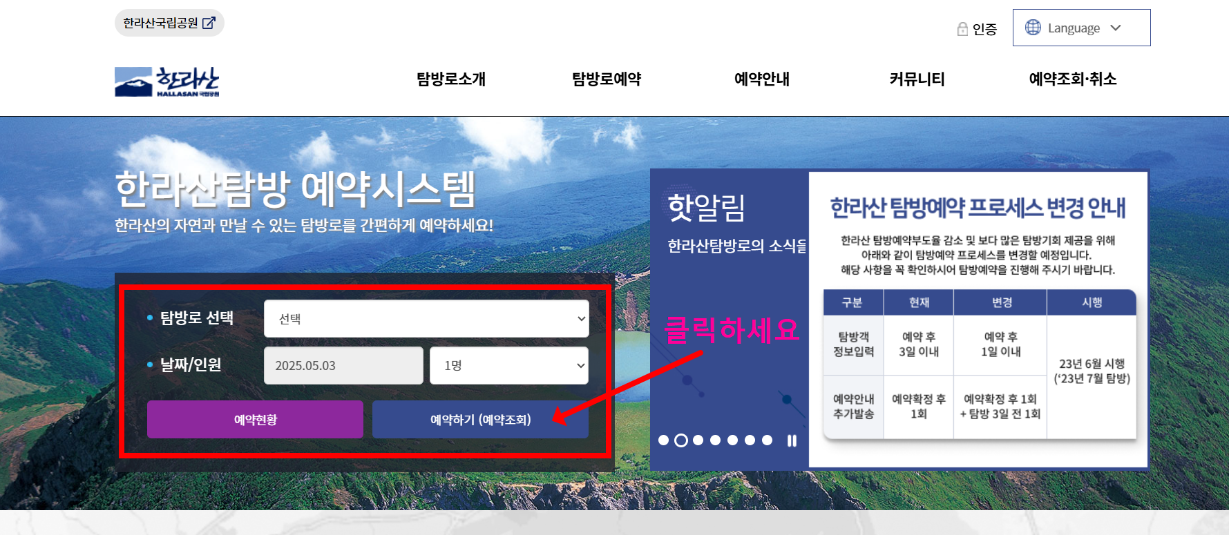 - 한라산탐방 예약시스템 접속