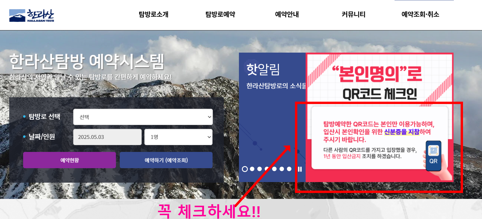 A. 예약 확인(QR코드) 없으면 입산 불가, 현장 진입 제한.