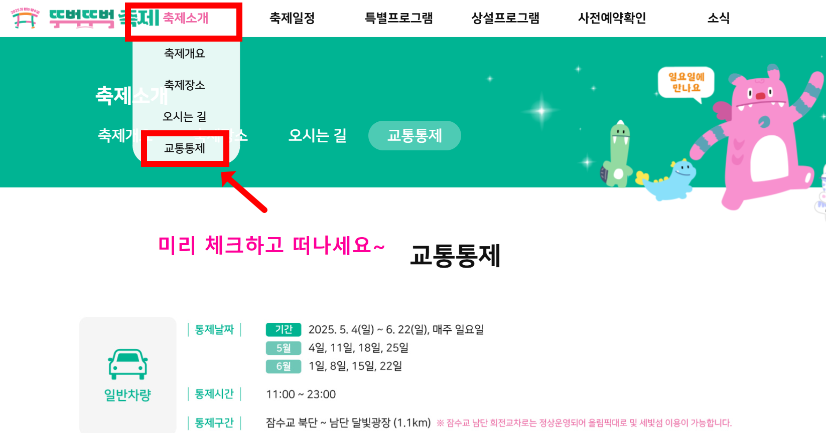 - 주차: 반포한강공원 회전교차로 주차장 이용 가능(축제 기간 혼잡 예상)