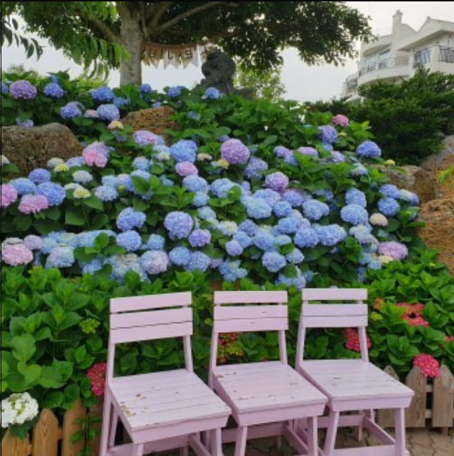 - 특징: 인스타 감성 가득한 수국 포토존이 마련되어 있고, 제주의 푸른 하늘과 어우러진 꽃밭은 연인과의 감성 여행지로 인기가 높습니다.